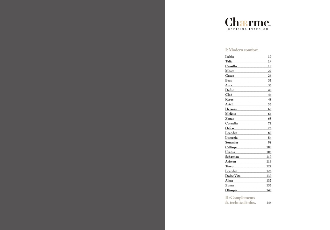 La collezione Chaarme comprende letti imbottiti, poltrone, sedie, divani, lampade ed accessori, eleganti e confortevoli parure, completamente personalizzabili per donare armonia, calore e personalità ad ogni ambiente della casa.