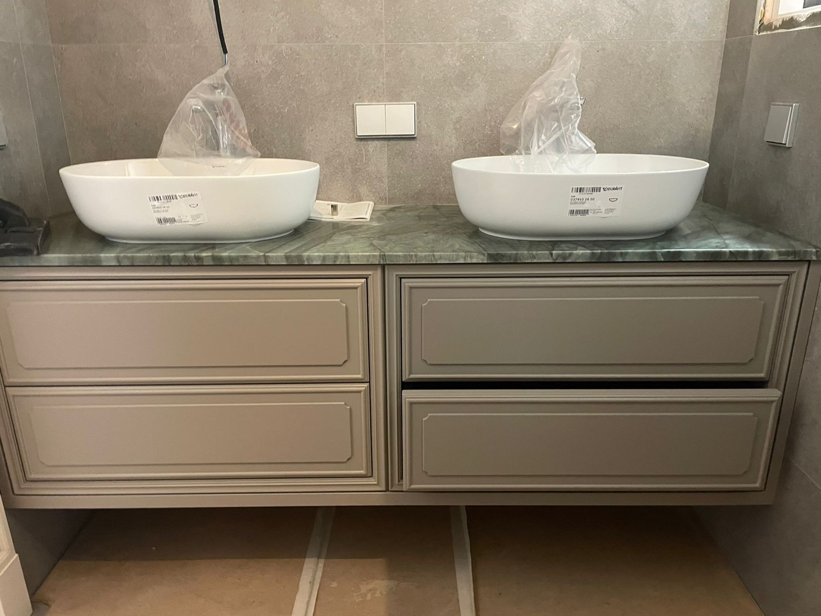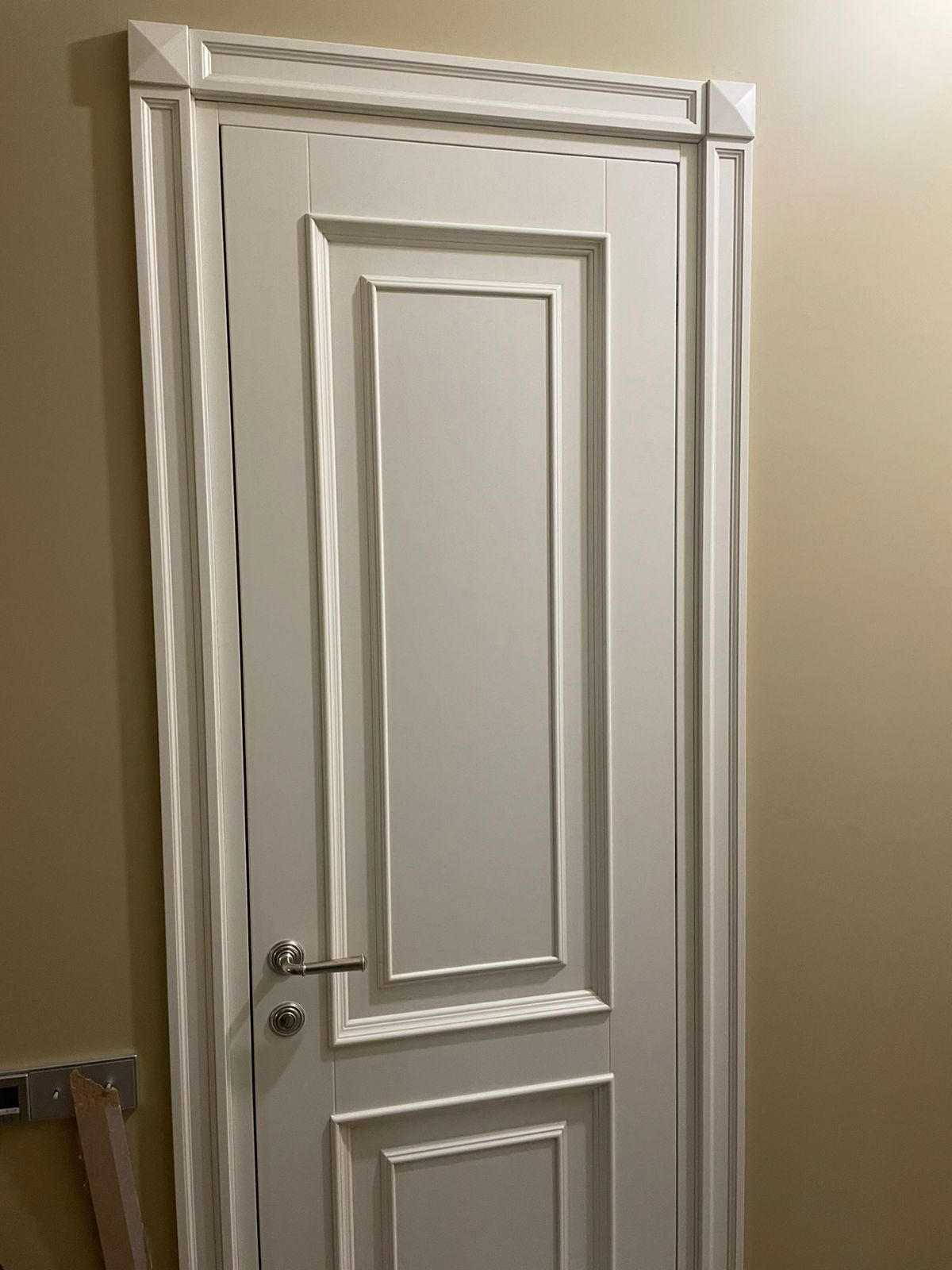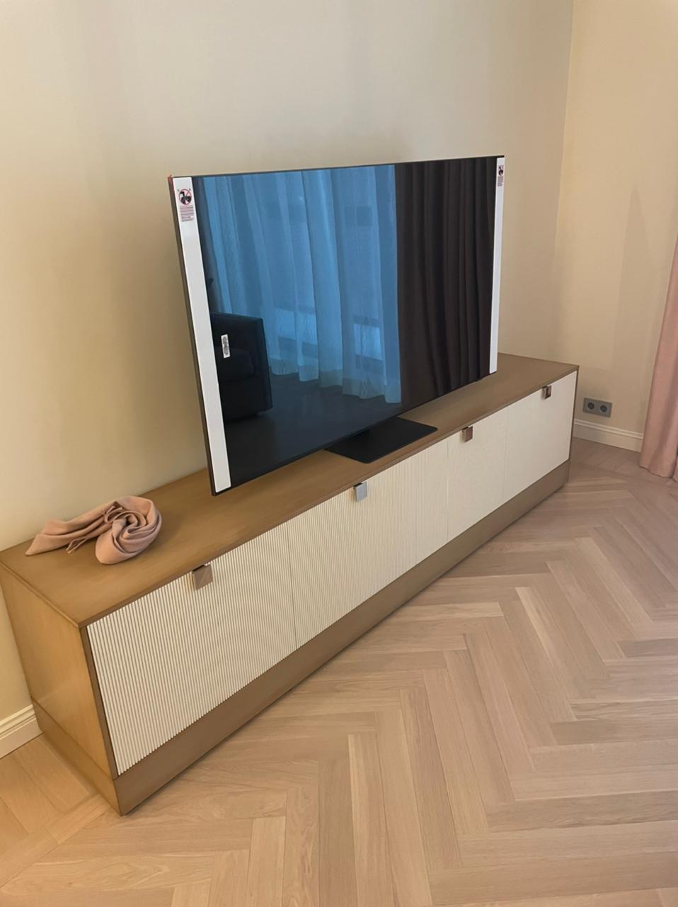 The project was created together with Casaglam. The client had identified the Boston model by Prestige for his kitchen environment. After visiting the company in Italy he decided to create the entire apartment with Prestige, both for the doors and for the other rooms, including the bathroom. The TV cabinet was completely designed and created based on the client’s express idea.