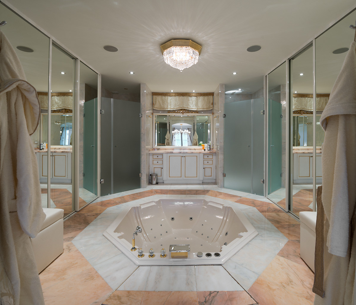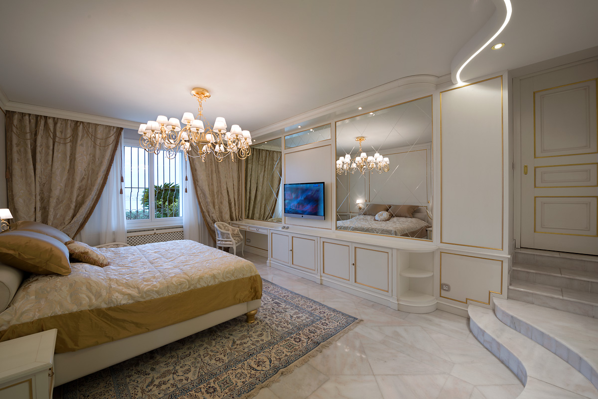 Il cliente aveva già avuto esperienza in merito alla qualità dei mobili di Prestige. Su disegno e organizzazione di Casaglam, Prestige ha realizzato tutta la villa a Nizza. L’eleganza della veniciatura bianca con dettagli in oro e argento rendono unica questa dimora.